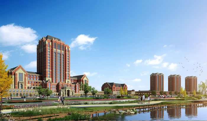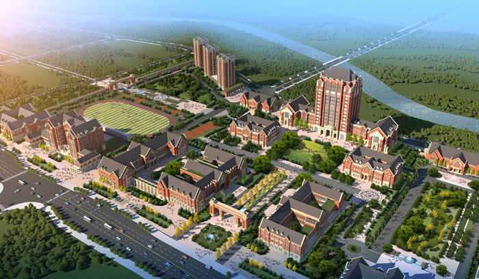 項目特色及難點:以西方古典宮殿及廣場的空間布局形制為規(guī)劃原則,形成功能性和視覺感并重的學院公共空間主軸,營造“禮儀書院”的氣質;著力打造水元素,結合英式建筑的圍合布置方式,實現“花園學府“構想。