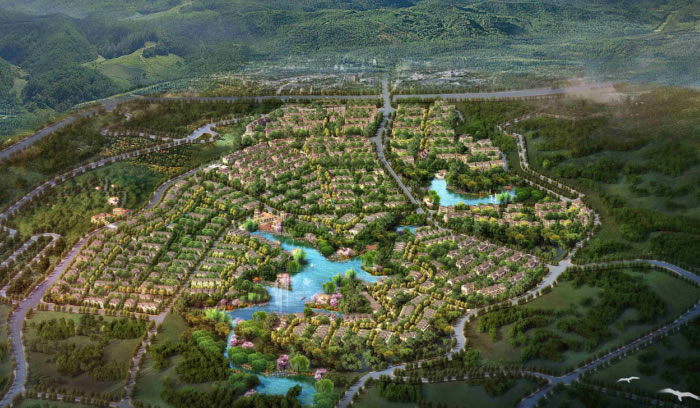 該項目位于縉云山脈和中梁山脈之間的臺地上,內(nèi)有兩個天然湖泊,地理環(huán)境得天獨(dú)厚。用地內(nèi)無可利用的植被,無名樹、古樹,有可利用的水體。設(shè)計原則“創(chuàng)造平緩的大地景觀界面,土方就地平衡,避免場地大開挖,建筑的正負(fù)零零標(biāo)高與各自鄰近道路一致,利用場地低連處,設(shè)置為地下車庫,并采用分組團(tuán)布置,場地高差較大處,利用疊落式綠化處理。盡量利用地形避免大的土石方量。總體構(gòu)思為通過一條貫穿三宗地塊的景觀帶將整個片區(qū)聯(lián)為一體,并與用地內(nèi)部的自然景觀,湖泊相結(jié)合,形成設(shè)計的目標(biāo)——山水大盤。各個理念的展示極具特色又同一協(xié)調(diào),整個規(guī)劃給人留下的強(qiáng)烈印象是:山水環(huán)繞、綠意盎然。環(huán)境效益的同時提升用地的經(jīng)濟(jì)效益,使工程達(dá)到功能組織合理、用地配置得當(dāng)、結(jié)構(gòu)清晰、道路順暢、配套齊全等要求,創(chuàng)造出“以人為本”尊重環(huán)境。