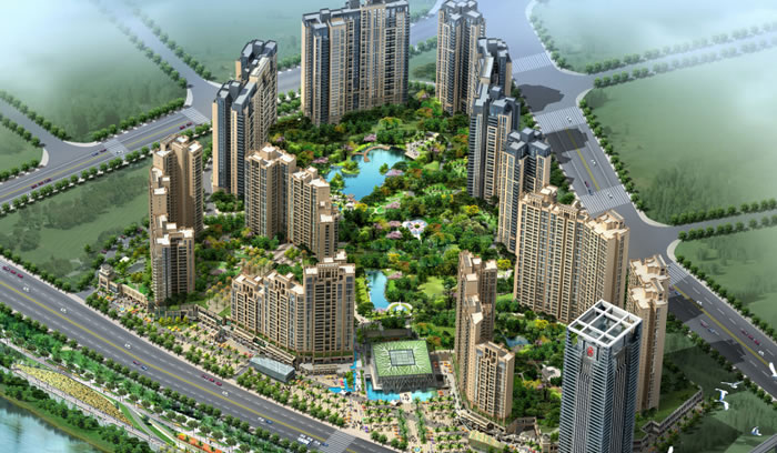 本工程城市背景現(xiàn)狀較為雜亂,方案規(guī)劃設(shè)計從城市設(shè)計的高度出發(fā),力圖在繁雜無序的背景上,創(chuàng)造出一組完整、大氣、時尚新穎的高檔住宅項(xiàng)目,給城市增添一抹亮色。折形板樓沿江按不同的角度錯落有致布置,減少建筑自身體量對城市的壓迫感,與城市形成一個友好而富有趣味性的界面,同時又打開內(nèi)部庭院和江景的視覺走廊。庭院內(nèi)部住宅或兩個塔樓,或三個塔樓連為一體,把每棟樓之間的小間距整合為每組建筑間的大間距,使得整個庭院空間與周圍環(huán)境之間的聯(lián)系更緊密,更通透,空間更為疏朗。為原有的住宅小區(qū)(如東方家園)得到更好的通風(fēng)和看江景創(chuàng)造了更好的條件。