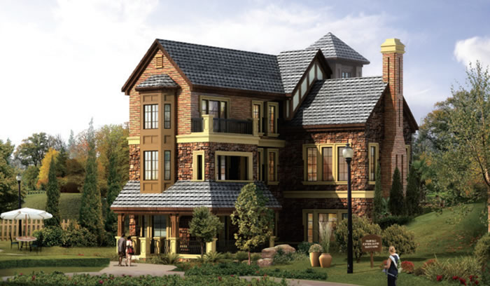 建筑整體堅(jiān)固結(jié)實(shí),色彩豐富,線條流暢,簡單大方,處處體現(xiàn)著古典文化追求活力和力量的自由性和開放性,這些特征同樣也體現(xiàn)在細(xì)節(jié)上,北美建筑所采用的裝飾元素精簡而有效,視覺符號簡潔而明朗,包含著源于歐洲、美洲等各種文化的個(gè)性和多元性的血統(tǒng)基因。北美風(fēng)格別墅更加充分地表現(xiàn)了對自然和人性的尊重,它通過對自然元素和傳統(tǒng)文化的放大與還原,將居者的內(nèi)心世界的細(xì)膩而完整地進(jìn)行寫意,準(zhǔn)確地表達(dá)主人真實(shí)的品位和格調(diào),于當(dāng)代形成了一種“臨山而居,近水而棲”新山水人居文化。