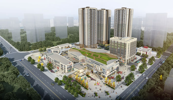 本項目功能復(fù)雜用地緊張,整體功能有高層住宅、幼兒園、臨街商業(yè)、集中商業(yè)、超市、電影院以及高層公寓,以住宅最大化的內(nèi)部庭院景觀為前提,集中商業(yè)錯落布置于城市展示面以及交通便利處。場地內(nèi)部高差關(guān)復(fù)雜,地塊南北高差6米,東西高差10米,東西處集中商業(yè)錯層布置,通過下沉庭院整合地形,形成雙首層空間,南北通過場地自然放坡,在商業(yè)處集中通過踏步扶梯解決上下,局部單層商業(yè)層層錯落,形成凹凸變化,錯落有致的,南北緊密聯(lián)系的居住、商業(yè)城市組團。