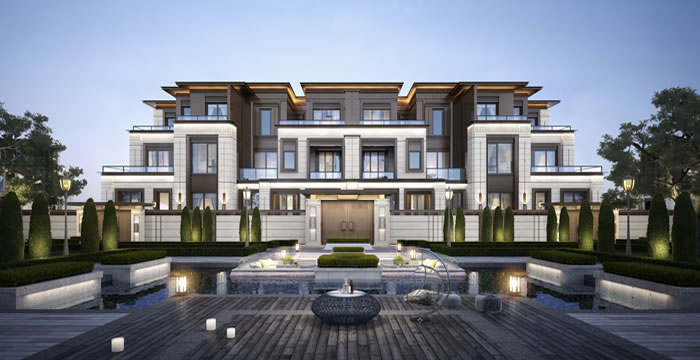 2.通過BIM精細化設(shè)計對疊拼和聯(lián)排別墅的外立面進行建模分析,充分表達了立面造型和線條的細節(jié),并復核出機電管線對立面效果的影響,從而提出優(yōu)化建議供業(yè)主方參考以便做出修改決策。